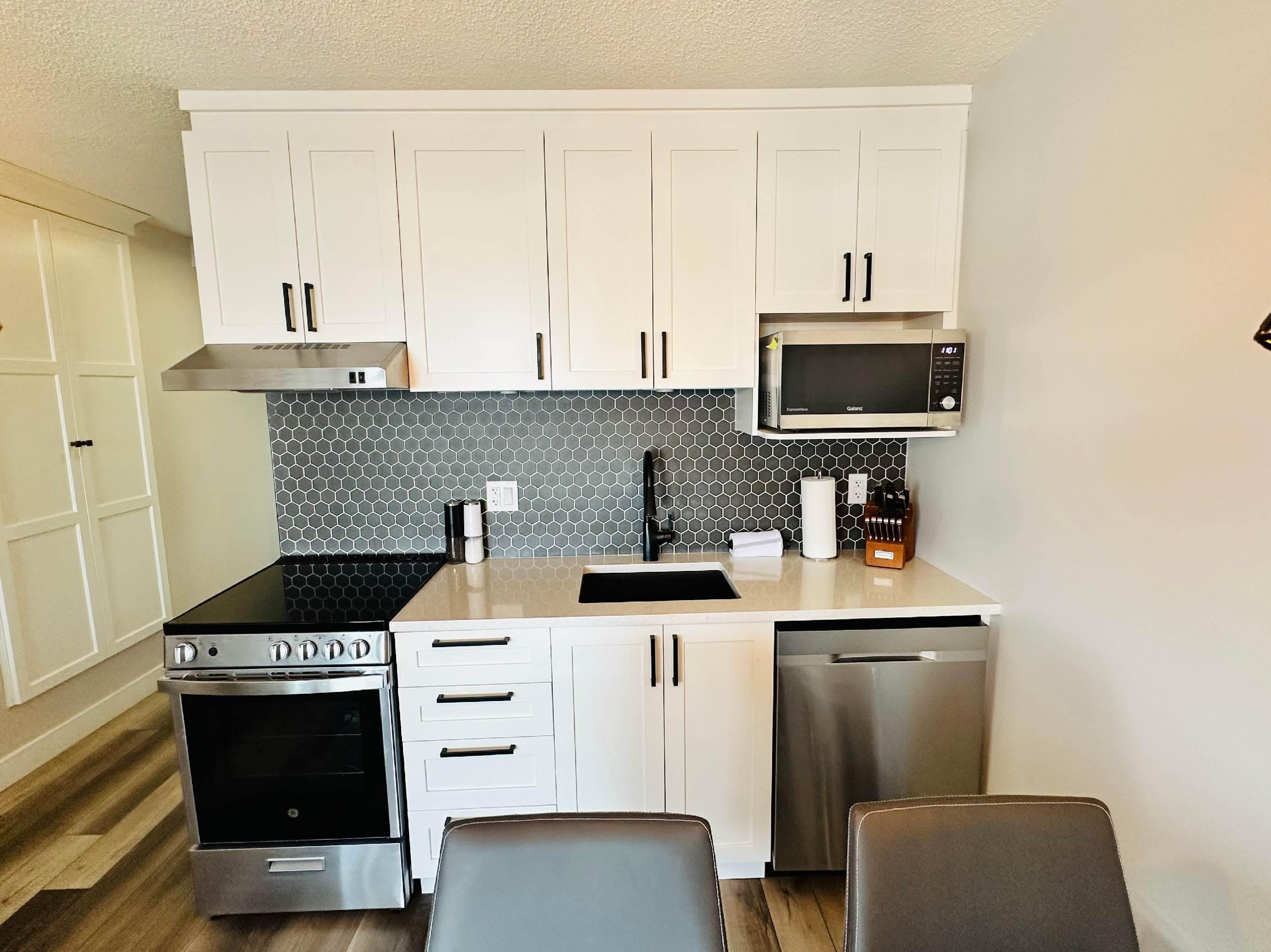 The kitchen, cleverly arranged, provides everything you need in a compact space. Modern appliances and stylish finishes add a touch of sophistication, while well-designed cabinets maximize storage.