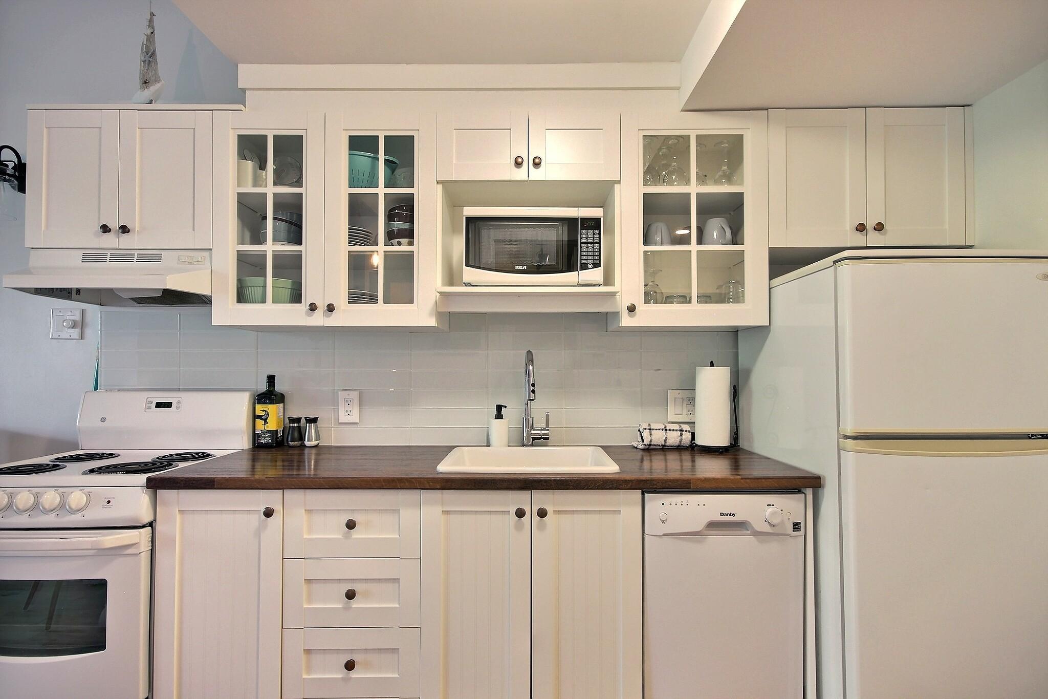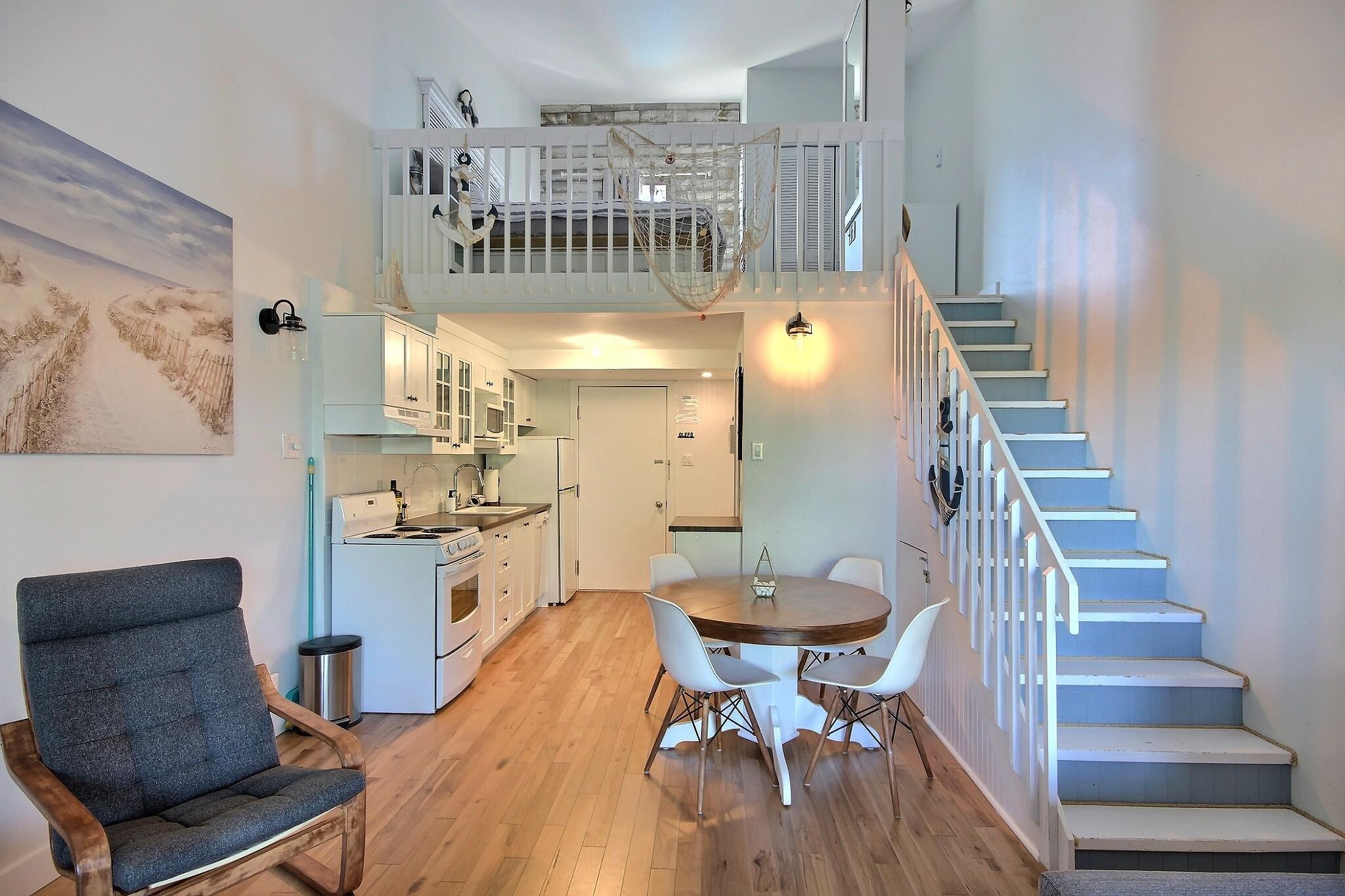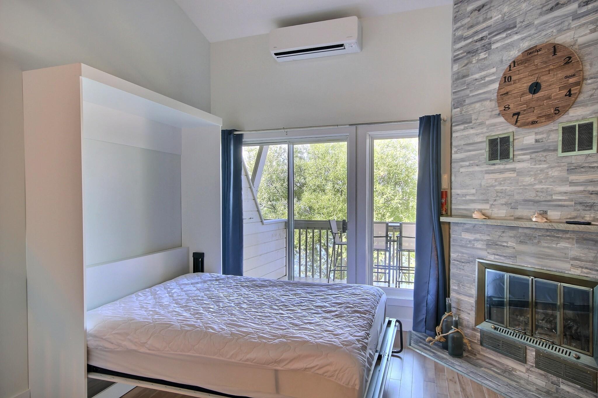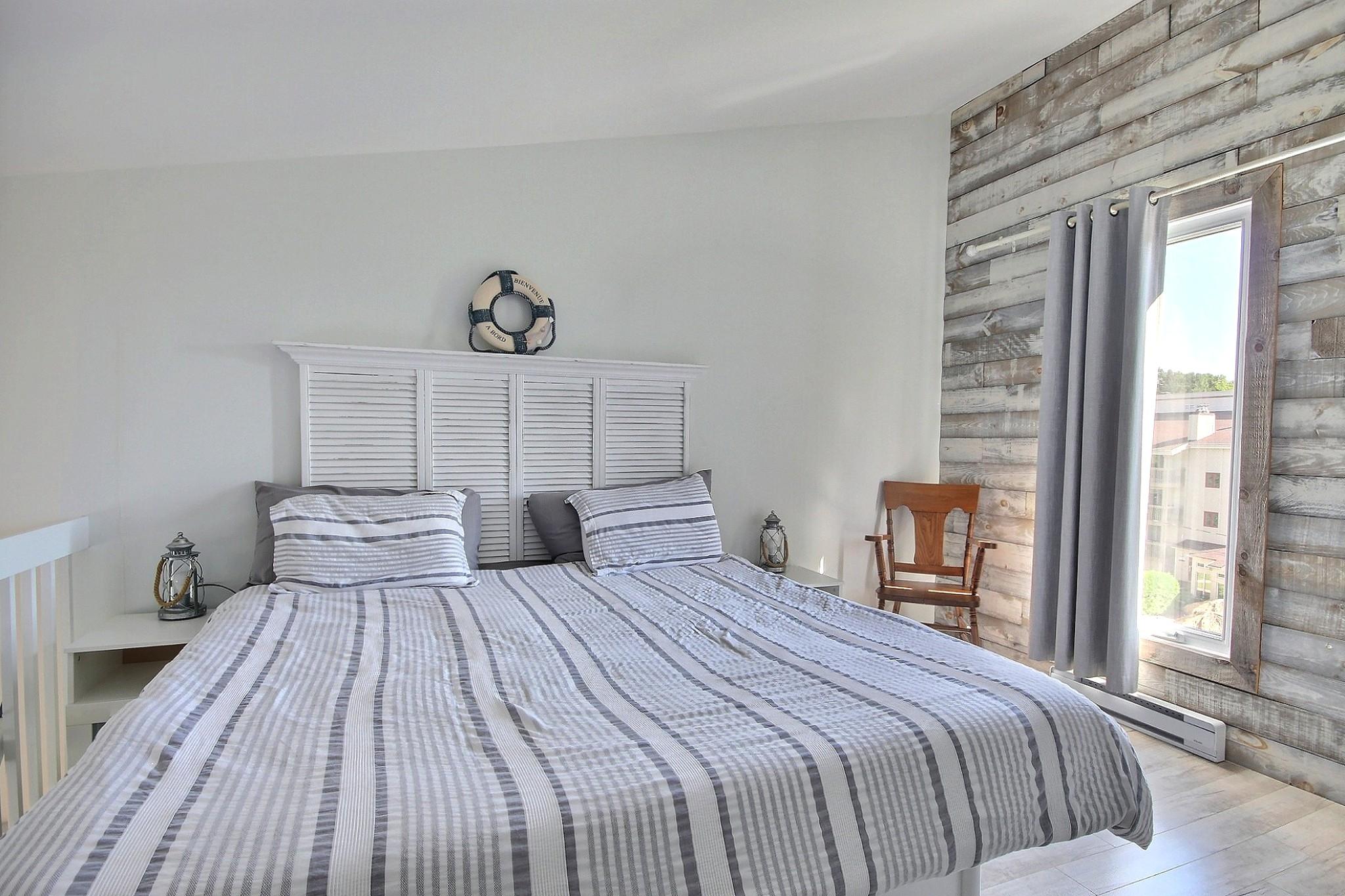 Entièrement meublé avec cuisine et salle de bain offrant tout le nécessaire dont vous aurez besoin (micro-onde, lave-vaisselle, cafetière Keurig et cafetière avec filtre, grille-pain et comprenant tous les accessoires de cuisine.TV HD avec câble, Internet, Wi-fi, jeux de société, foyer au bois (bûches écologiques seulement$), air climatisé.Lit queen en chambre mezzanine, divan-lit (double) au salon, literie, serviettes de bain (sauf serviettes de plage/piscine)Condo et édifice non-fumeur, animaux interdits, immeuble tranquille, pas de bruit entre 23h et 8h, stationnement en bas du condo et balcon privé avec mobilier de patio.Buanderie sur place$, piscine intérieure (eau salée) avec spa, piscine extérieure (eau salée), sauna, salle de gym, petite plage, chaises longues et balançoires, modules de jeux pour enfants, terrain de volley-ball, pétanque, support à vélo, marquise avec chauffe-terrasse, frigo et BBQ.Possibilité de louer des motos marines $ ou des bateaux $ dans les marinas à proximité.Possibilité de louer un quai $ et un espace de stationnement à la Marina à 3 minutes de marche ou au Quai municipal. (Les remorques à bateaux sont interdites dans le stationnement et sur la rue Théroux).